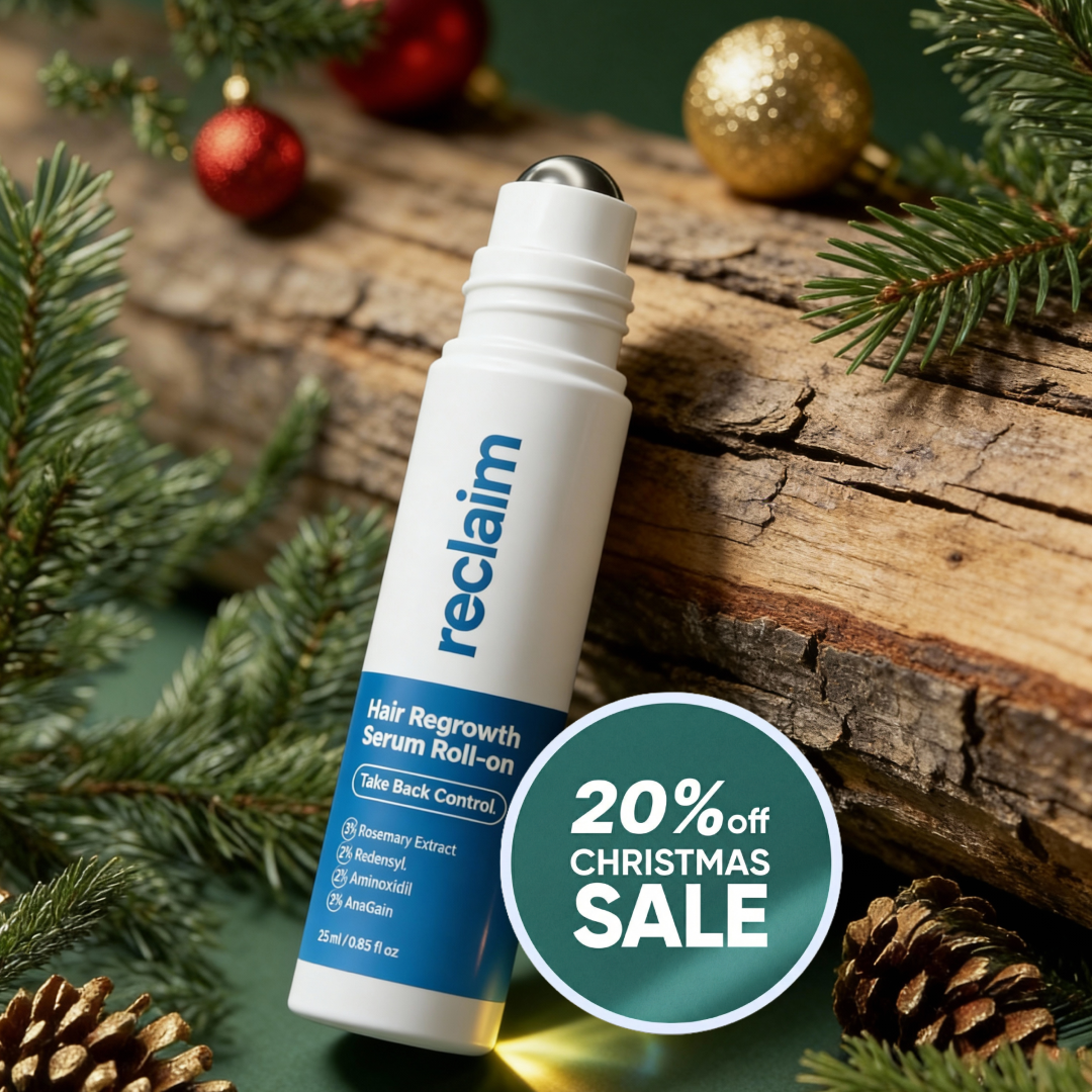 Reclaim works best when you catch it early — but even if you’ve lost density, if there are still follicles (even light fuzz), Reclaim helps support a healthier scalp environment. It’s about staying proactive and stopping the slide.